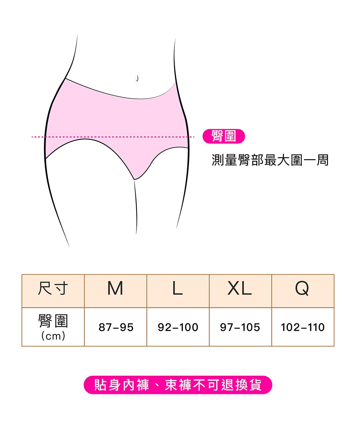(貼身內褲不能退換貨,請確認尺寸後再下訂喲!)