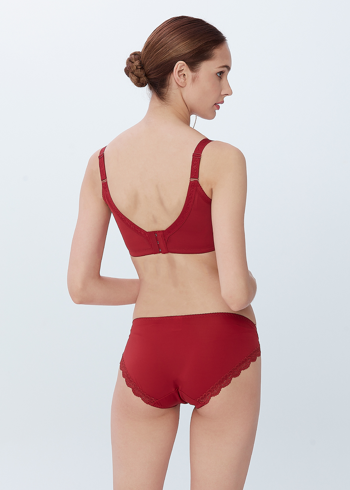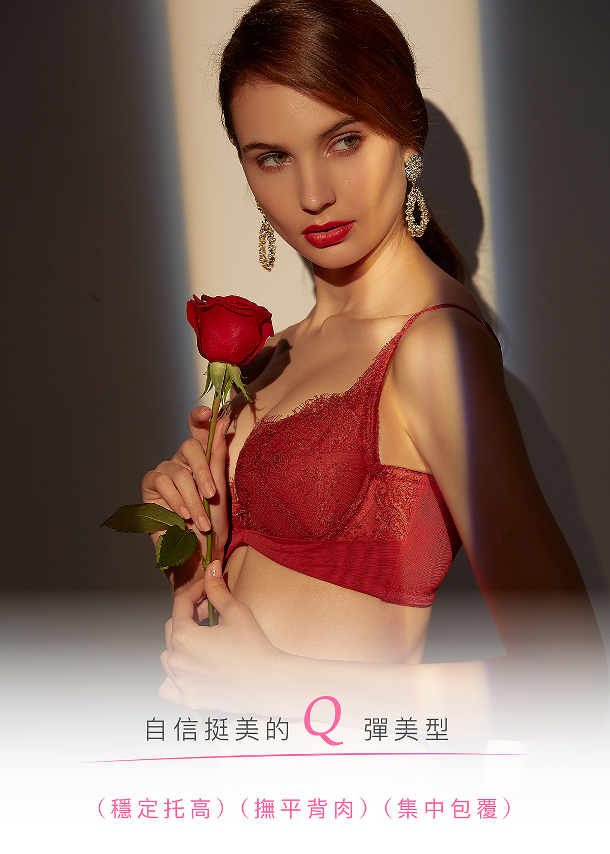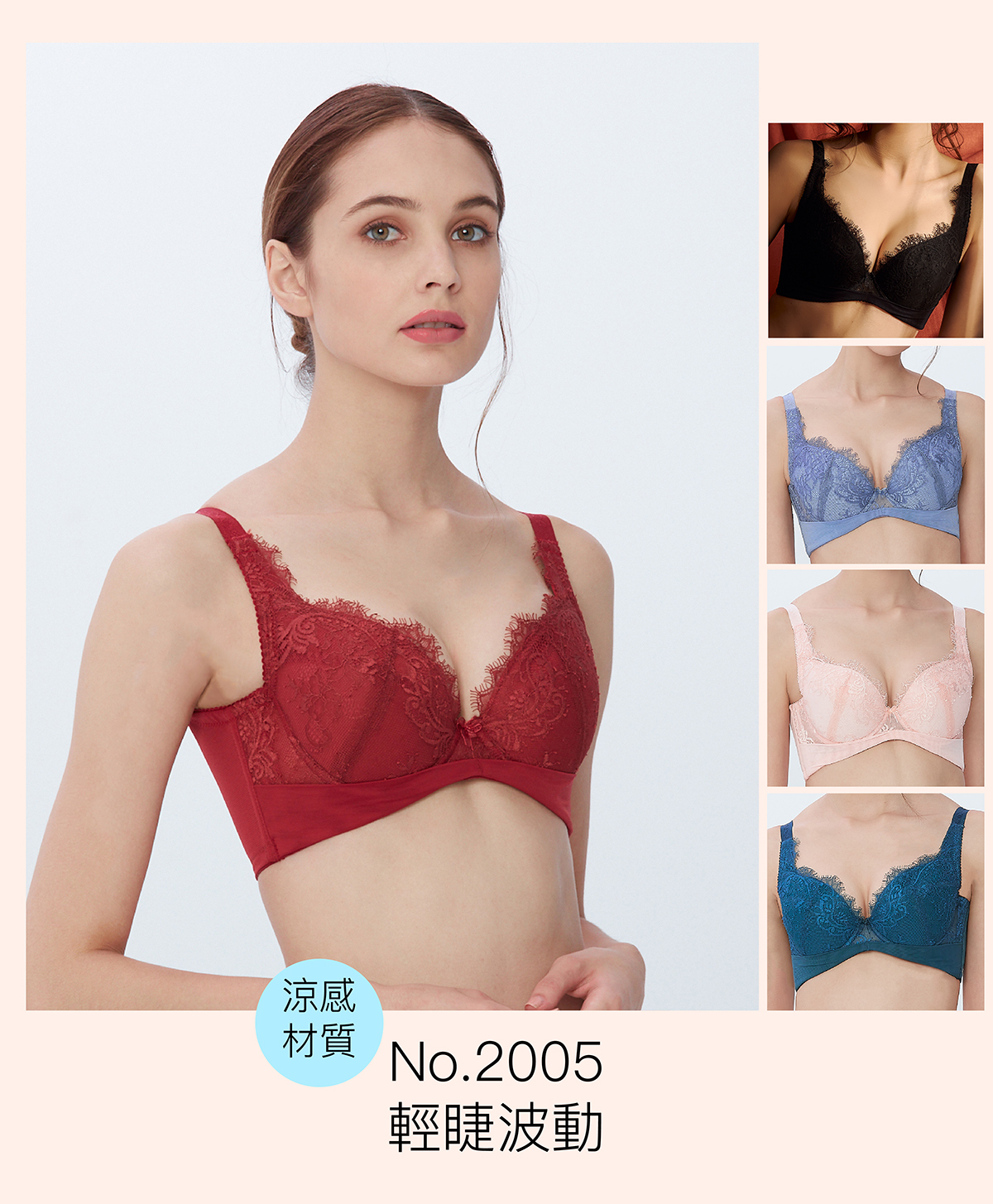 功能性:內提托(集中托高)、高背設計(撫平背肉)、低脊心設計(不壓迫胸骨)、三排扣