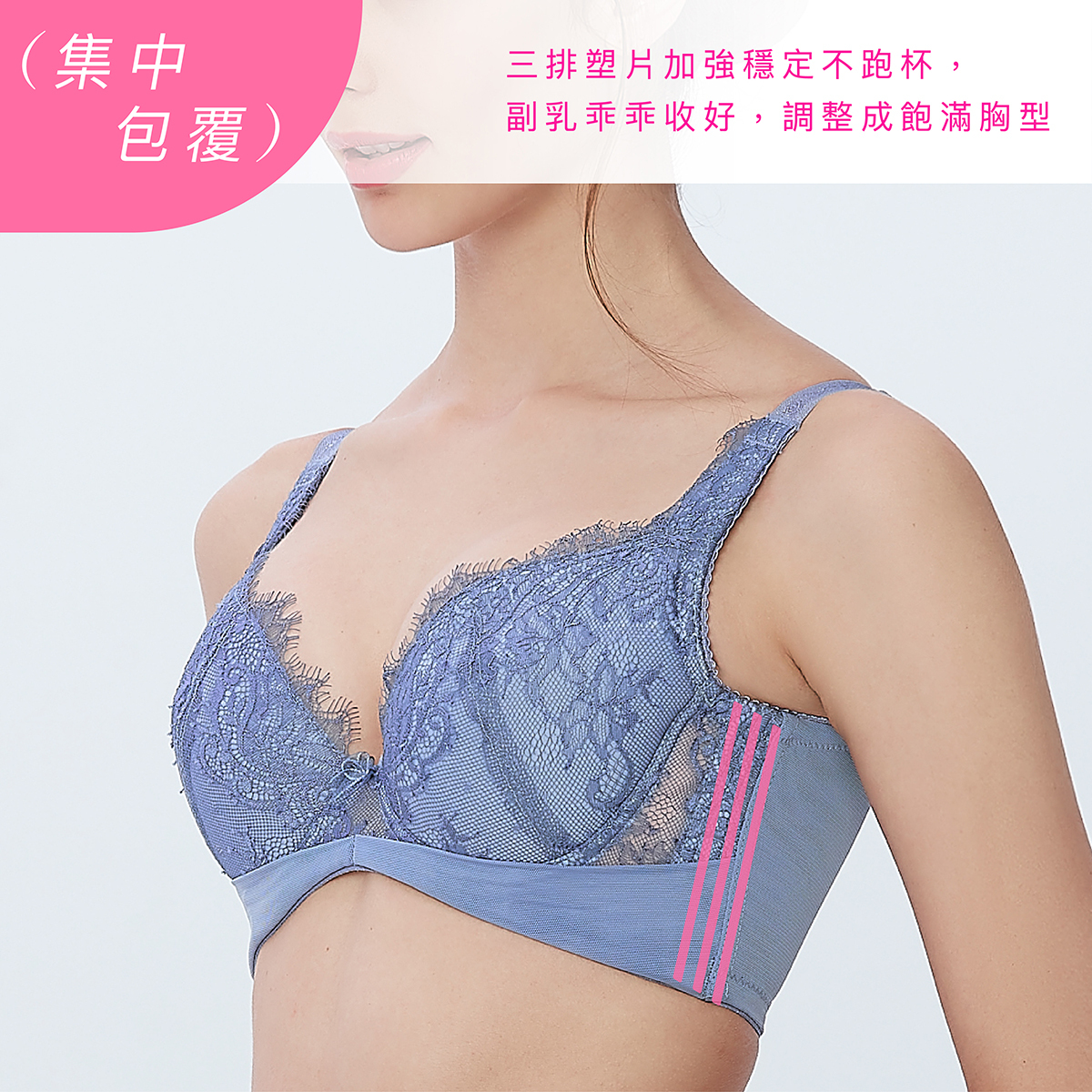 脅邊塑片:三條直立式塑片,更加穩定,收復副乳及背肉